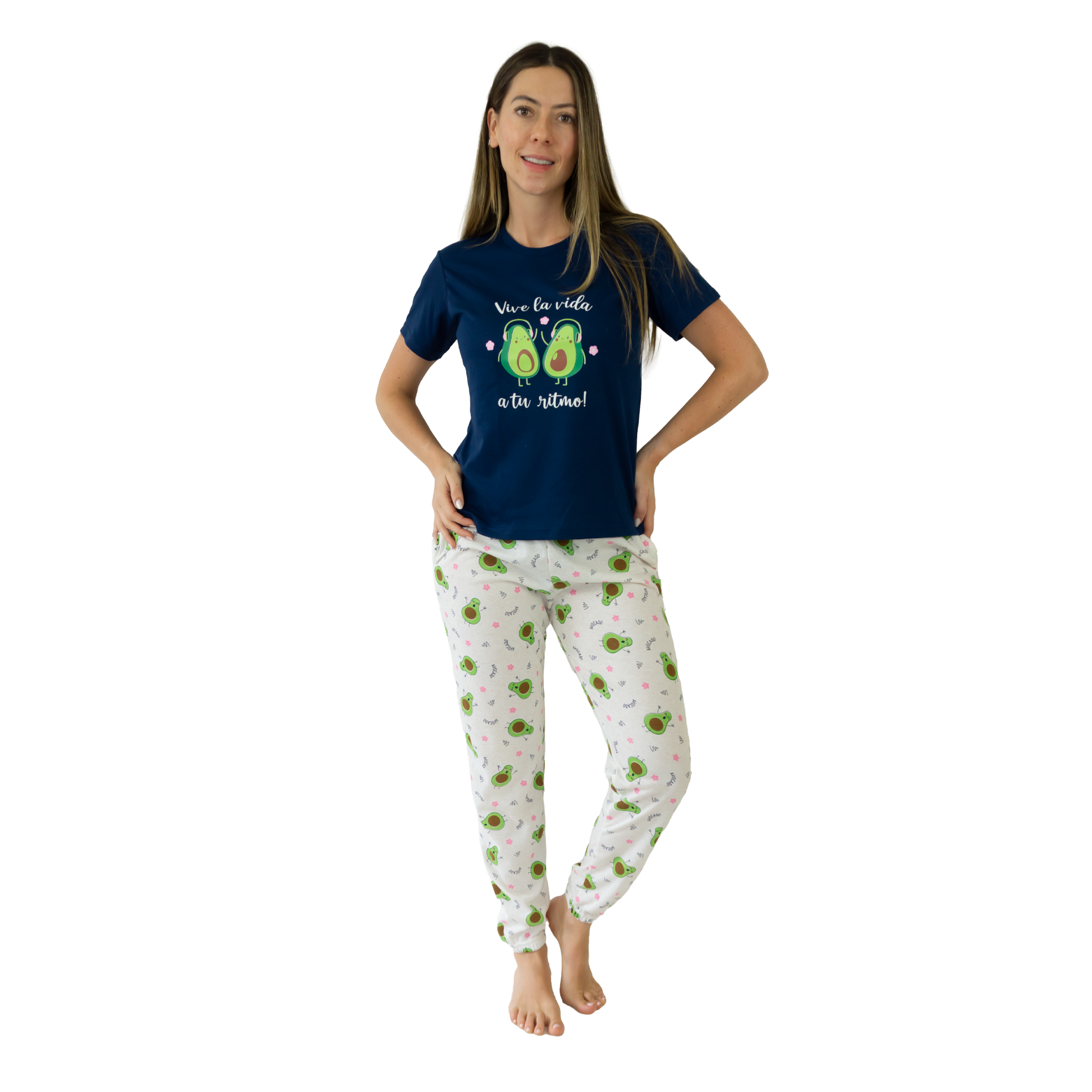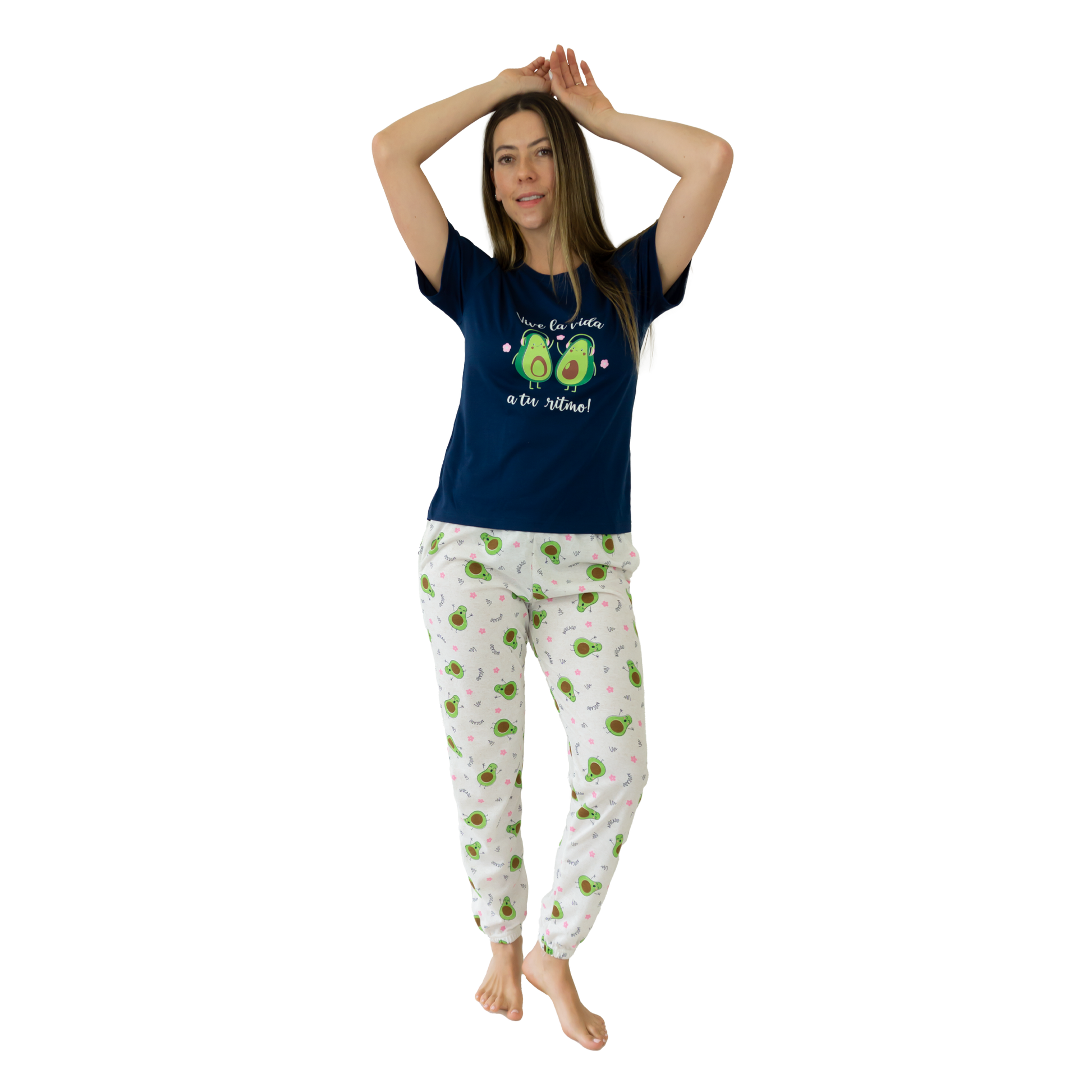 Pijama de pantalón con camiseta. 65% Poliéster 35% Algodón. Estampado de aguacate.