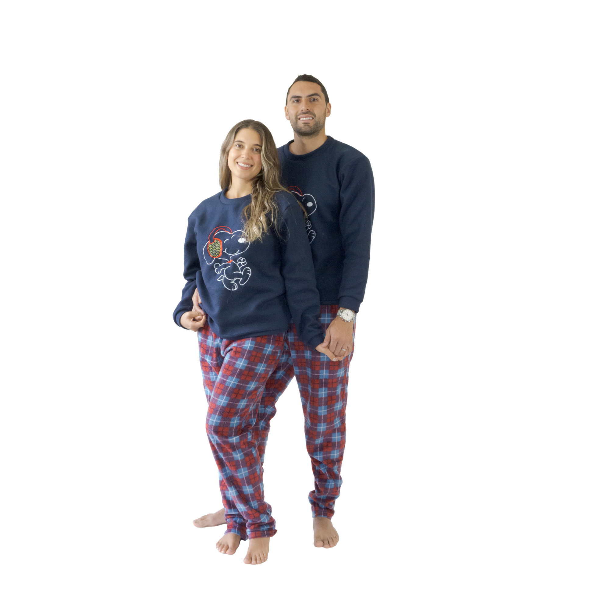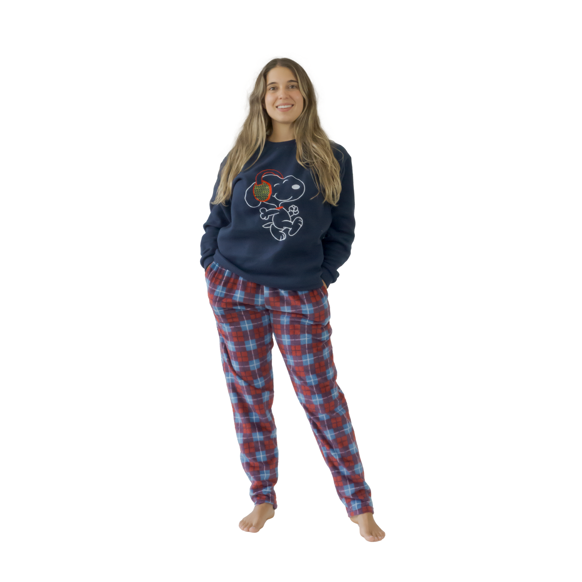 Pijama de mujer con pantalón largo y camisa Larga. Fleece 100% Poliéster (Dulce abrigo) Estampado de Snoopy en la camisa y pantalón de cuadros.